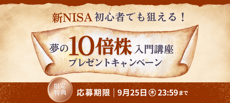 新NISA初心者でも狙える!夢の『10倍株』入門講座【特典ページ:視聴期限10/8(水)まで】