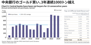 中国、インド、トルコなどの中央銀行が、ドル依存脱却(脱ドル化)のために外貨準備として金を買い続けています。この「巨大なクジラ」の買い支えがある限り、価格が大きく崩れる可能性は低いと考えられます。