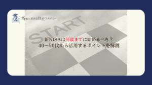 <blockquote class="wp-embedded-content" data-secret="uNpzG15X60"><a href="https://official.gfs.tokyo/blog/nisa-from-what-age">新NISAは何歳までに始めるべき? 40~50代から活用するポイントを解説</a></blockquote><iframe sandbox="allow-scripts" security="restricted" src="https://official.gfs.tokyo/blog/nisa-from-what-age/embed#?secret=uNpzG15X60" width="600" height="400" title="“新NISAは何歳までに始めるべき? 40~50代から活用するポイントを解説” — ゼロから始める投資アカデミー" data-secret="uNpzG15X60" frameborder="0" marginwidth="0" marginheight="0" scrolling="no" class="wp-embedded-content"></iframe><script type="text/javascript"> /*! This file is auto-generated */ !function(c,l){"use strict";var e=!1,o=!1;if(l.querySelector)if(c.addEventListener)e=!0;if(c.wp=c.wp||{},c.wp.receiveEmbedMessage);else if(c.wp.receiveEmbedMessage=function(e){var t=e.data;if(!t);else if(!(t.secret||t.message||t.value));else if(/[^a-zA-Z0-9]/.test(t.secret));else{for(var r,s,a,i=l.querySelectorAll('iframe[data-secret="'+t.secret+'"]'),n=l.querySelectorAll('blockquote[data-secret="'+t.secret+'"]'),o=0;o<n.length;o++)n[o].style.display="none";for(o=0;o<i.length;o++)if(r=i[o],e.source!==r.contentWindow);else{if(r.removeAttribute("style"),"height"===t.message){if(1e3<(s=parseInt(t.value,10)))s=1e3;else if(~~s<200)s=200;r.height=s}if("link"===t.message)if(s=l.createElement("a"),a=l.createElement("a"),s.href=r.getAttribute("src"),a.href=t.value,a.host===s.host)if(l.activeElement===r)c.top.location.href=t.value}}},e)c.addEventListener("message",c.wp.receiveEmbedMessage,!1),l.addEventListener("DOMContentLoaded",t,!1),c.addEventListener("load",t,!1);function t(){if(o);else{o=!0;for(var e,t,r,s=-1!==navigator.appVersion.indexOf("MSIE 10"),a=!!navigator.userAgent.match(/Trident.*rv:11\./),i=l.querySelectorAll("iframe.wp-embedded-content"),n=0;n<i.length;n++){if(!(r=(t=i[n]).getAttribute("data-secret")))r=Math.random().toString(36).substr(2,10),t.src+="#?secret="+r,t.setAttribute("data-secret",r);if(s||a)(e=t.cloneNode(!0)).removeAttribute("security"),t.parentNode.replaceChild(e,t);t.contentWindow.postMessage({message:"ready",secret:r},"*")}}}}(window,document); </script>