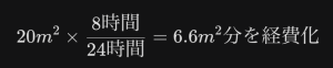 例:リビング(20平米)を1日8時間仕事で使う場合