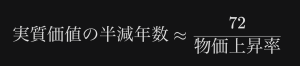 年間 2% のインフレが続いた場合、あなたの資産がどれほどのスピードで溶けていくのか。これを「72の法則」の逆転の発想で計算してみましょう。