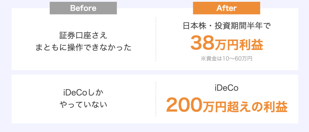 入学前は株式投資を独学でやろうとしても上手くいきませんでした。入学後はGFS講義で株式投資の知識を学習し、日本株では100万円以上の利益がでました。